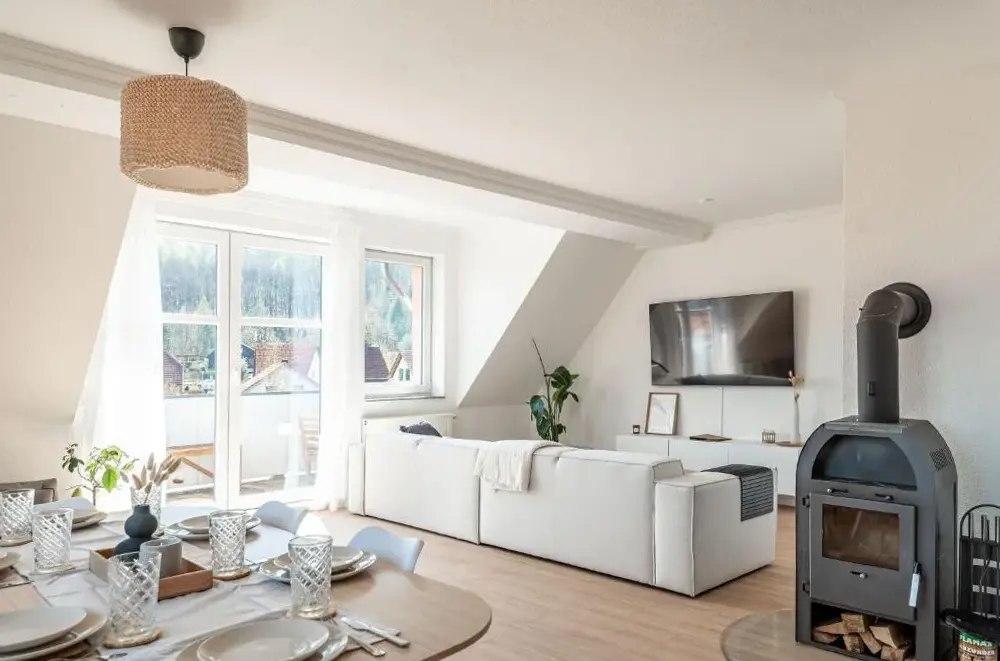The Premium Apartment at 1A Freiheit, Wernigerode offers a comfortable stay with convenient access to local attractions. Guests appreciate the spacious rooms, cleanliness, and thoughtful amenities like a coffee machine available on-site. The balcony provides scenic views over the area, adding to the relaxation experience after exploring nearby sights. Free parking is included for guests arriving by car, ensuring easy drop-off and departure without hassle. Located just 750 meters from Mia House and within walking distance of Hasseröder Ferienpark (650m) and Conny’s Gasthaus und Kegelbahn (850m), visitors have quick access to dining and leisure options while still enjoying privacy. For outdoor enthusiasts, public buses provide fast connections to hiking trails—including routes near Bürger- und Miniaturenpark (4.1km away)—and downtown Wernigerode is easily reachable via transit. Nearby landmarks such as Wernigerode Castle (4km) and Eisenhüttenpark (6km) offer cultural and historical exploration opportunities, making this apartment well-suited for both short getaways and extended stays.